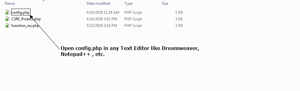 - Step : 2) Open admin folder then open db folder the open config.php in any Text Editor like Dreamweaver, Notepad++ etc. admin folder->db folder->config.php