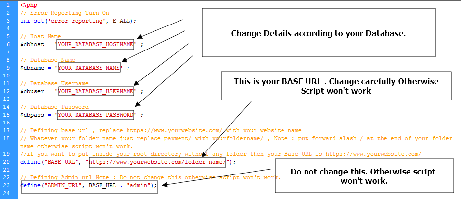 - Note 3) : Do not change ADMIN URL in config.php . Otherwise Script won't work.